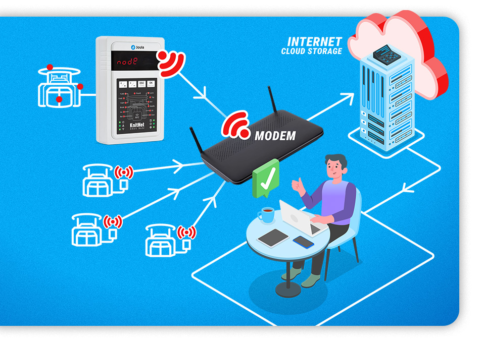KnitVision seamlessly connects with KnitNet, sending all defect logs and machine stop events to the cloud.